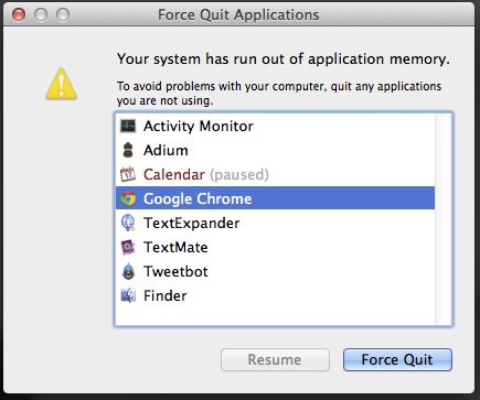 I upgraded to Mavericks from Mountain Lion, and I have been getting the error message "Your System has Run out of Application memory", and I am forced to restart the computer to be able to keep working.