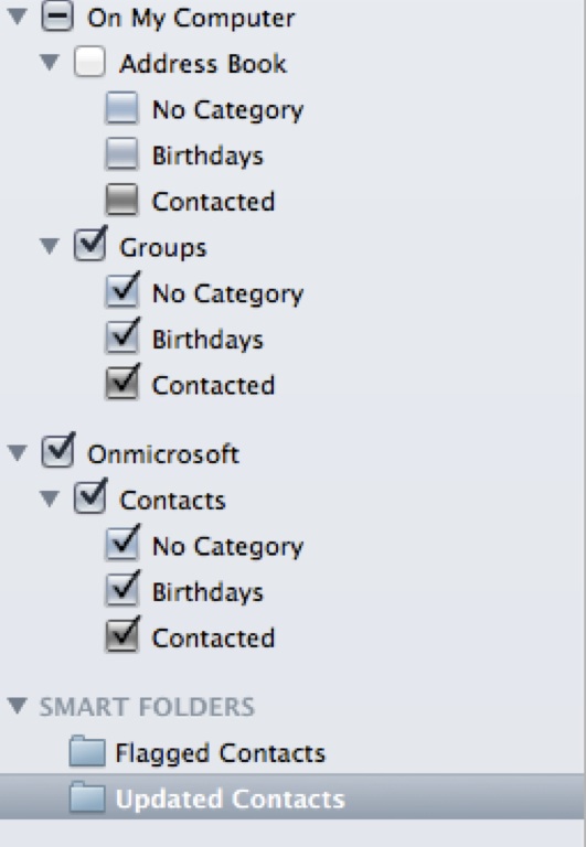6. Finally, and this is the key step, I copied the information from my On My Computer address book and Calendar to the OnMicrosoft folders on Outlook 2011. Then I unchecked the On My Computer folders, preventing myself from seeing duplicate contacts and calendar events in Outlook 2011. I did not erase the information in the On My Computer folders, as I wanted to retain duplicate information in case there was a problem with Microsoft Exchange. One small point is that Contact Groups cannot be copied to the OnMicrosoft folders.