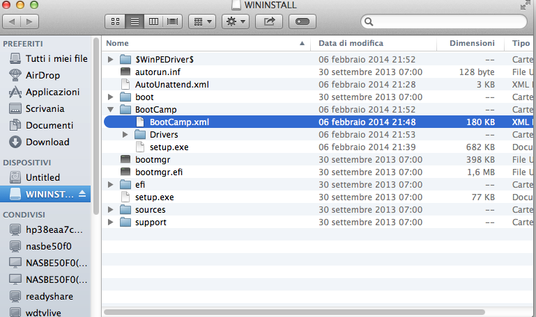 5) Set the pendrive up with BootCamp Assistant 5 from a Mac Book Retina Late 2013. Contents look as it follows: