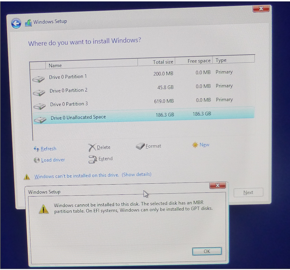 When I boot into Pendrive, 8.1 Setup begins but then I get into the MBR/GPT Error