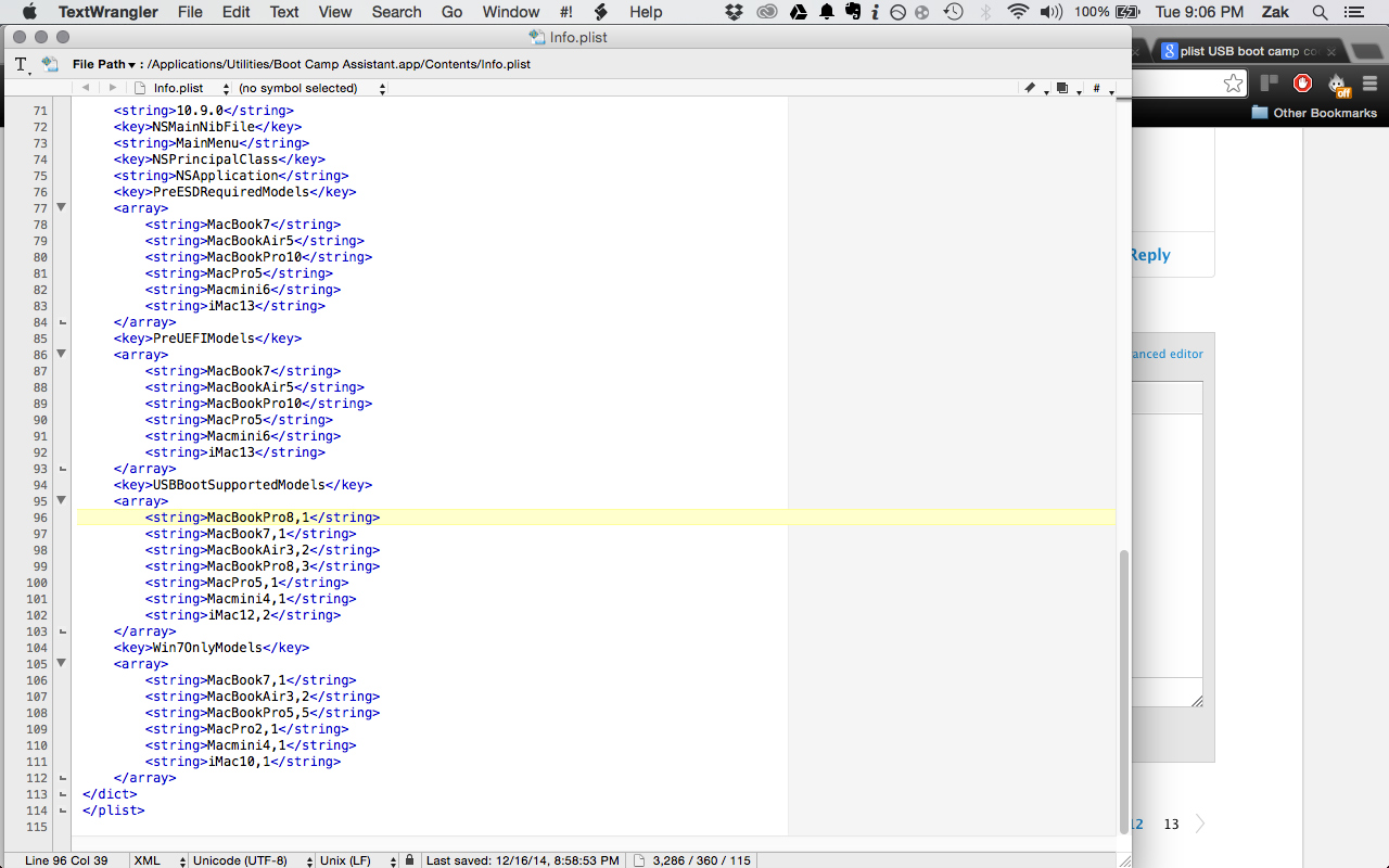 The next step is only for OSX 10.9, as it employs some kind of code signature to prevent you from changing info.plist and cause bootcamp to crash.