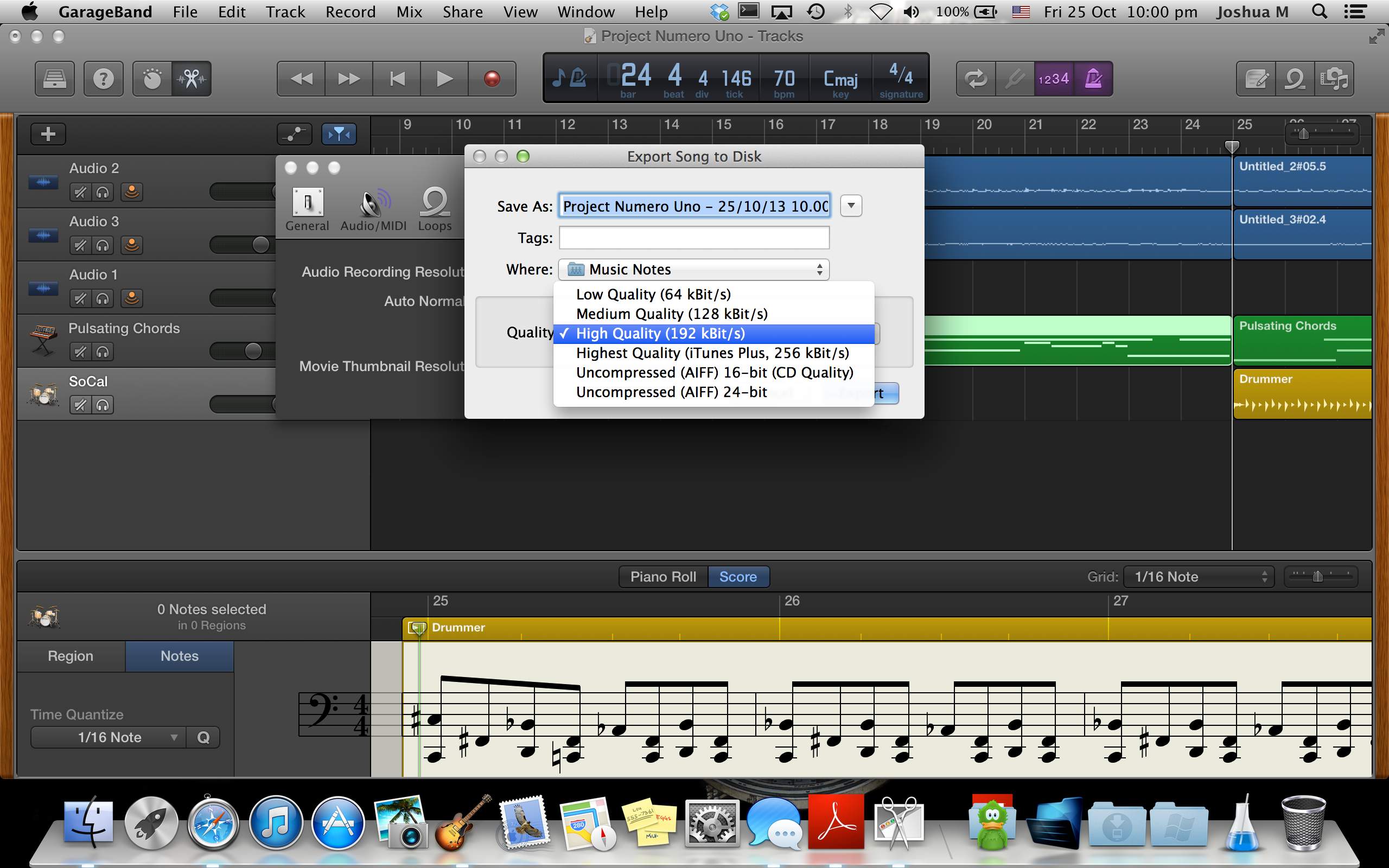 How do i export audio files in mp3 from Garageband 10.0.0?