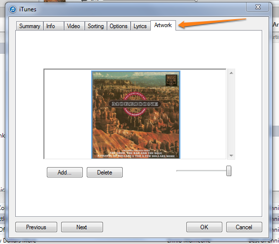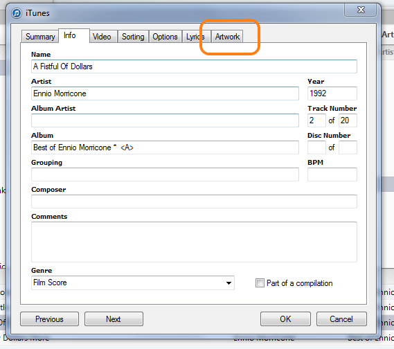 Double-click the "Artwork" box, add a .jpg and you get this.