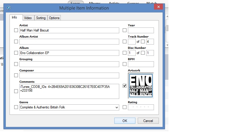 Click "OK", though, and nothing happens; the display is as per picture 3. Go back into "Get Info" for multiple files and the "Artwork" box is blank again. Selecting and completing the "Album Artist" box makes no difference either.