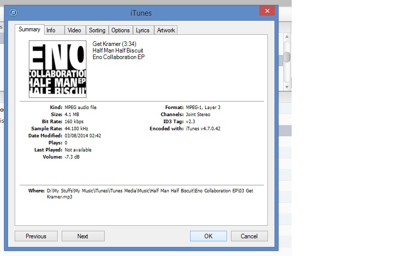 Double-click the "Artwork" box, add a .jpg and you get this.
