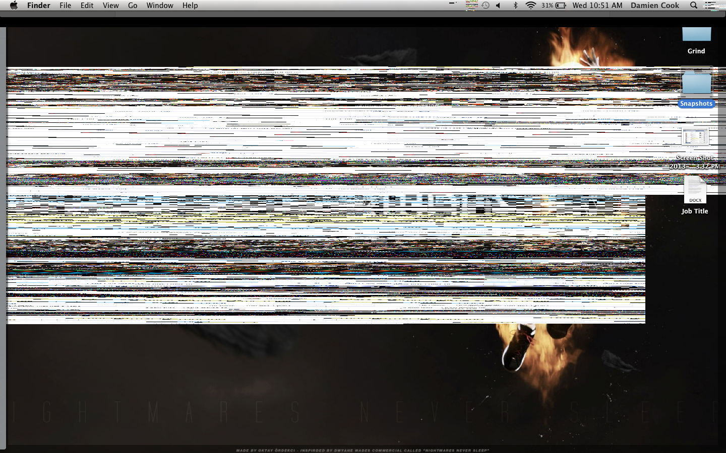 - Go over any icons in the dock with the mouse, click on any folders in the dock, make every place where this distortion has occurred appear on the screen (almost, as if making it known?)