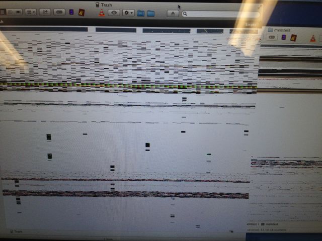 THEN I REMEMBERD, last week the problem started just as I was about to give a presentation to a university faculty, I had no time to play so I jacked in the Mini AVI VGA adapter for the projector and hoped the projection would work even if my screen was glitchy