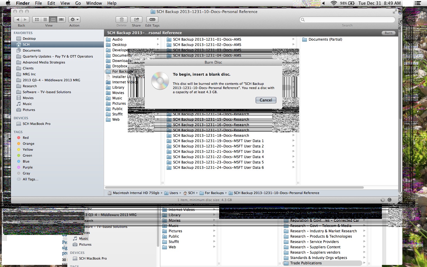 Hi - About 2 weeks ago, Apple replaced my logic board. I returned home with high expectations but within about a day, the problem returned. To review: in Energy Saver, forcing the Intel on-board graphics to save battery life makes the problem happen, and enabling both Intel and Invidia graphics makes the graphics issue go away. Go back to Intel-only and problem returns. 95% of my application software usage is Firefox v25, Microsoft Office 2011 (Word, Excel, PPT, Outlook - v14.3.9 / Build131030 ), Adobe Photoshop CS5, Adobe Bridge.
