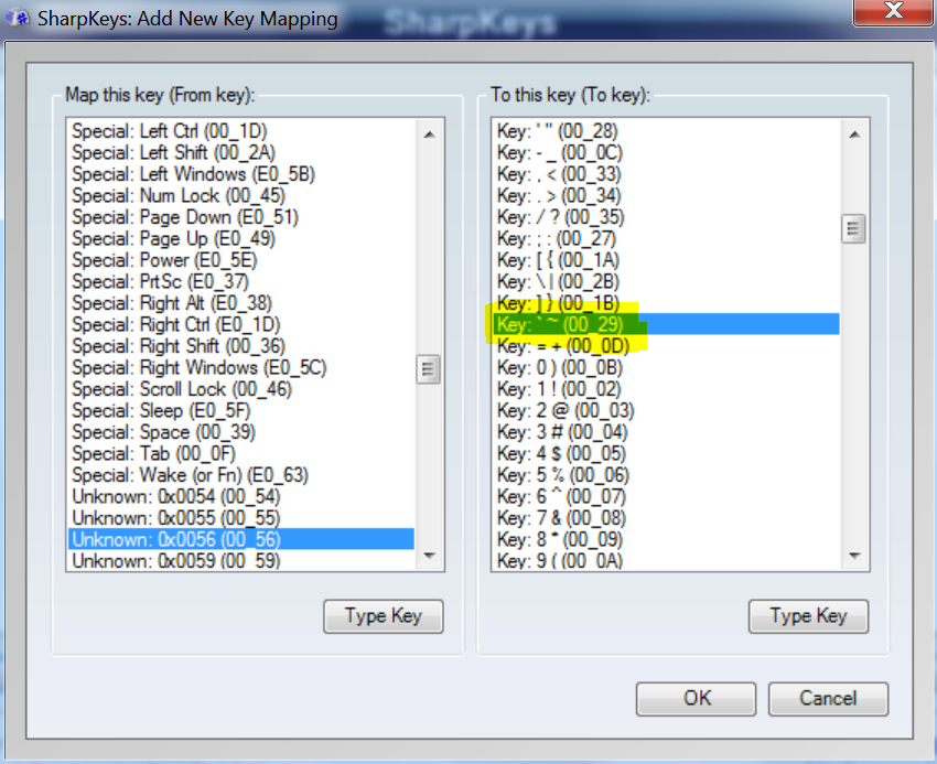 I'm having an issue where the backtick/tilde key (right above tab) maps to the characters "\" and "|" respectively on Windows 8.1. I've tried changing the keyboard layout language between: