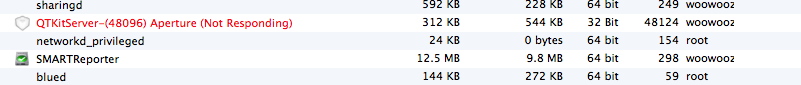 I do not know why QTKitServer would be involved in updating an Aperture library, but it is. Anyone have a solution.\? Hate to Force Quit Aperture.