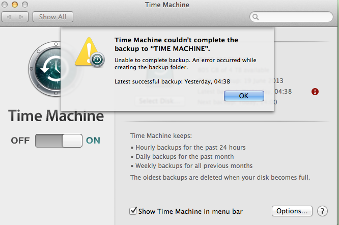 Time Machine fails
