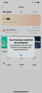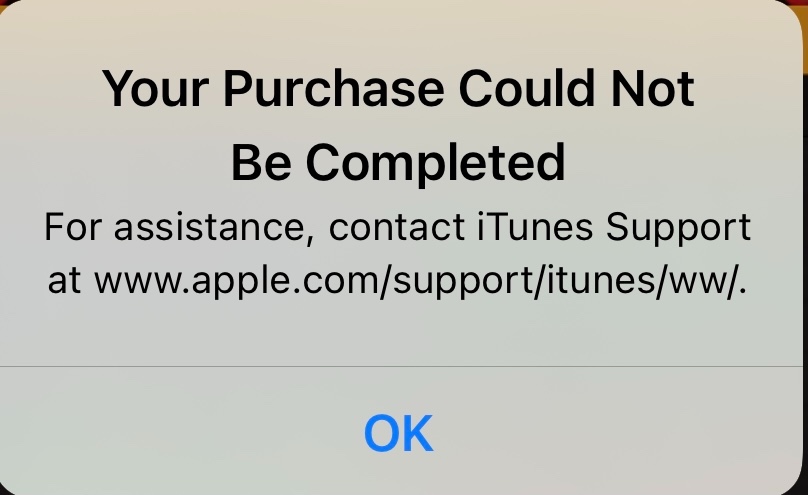 'Your purchase can not be completed. For assistance contact iTunes Support at www.app.com/support/ww.