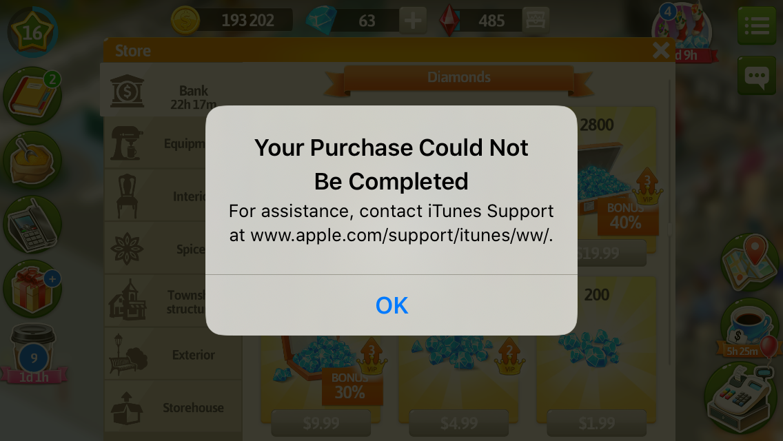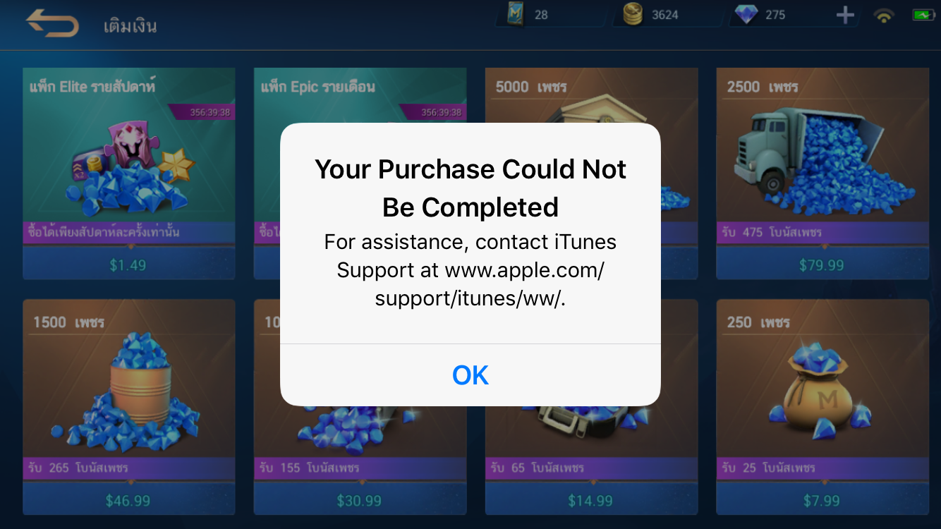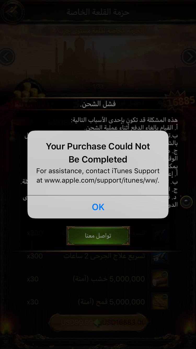 'Your purchase can not be completed. For assistance contact iTunes Support at www.app.com/support/ww.