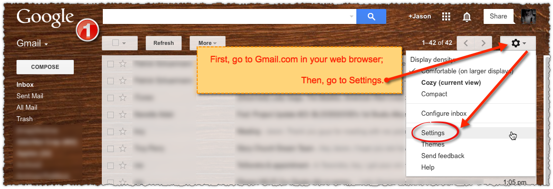 • on Gmail.com > Settings > Forwarding & POP/IMAP >