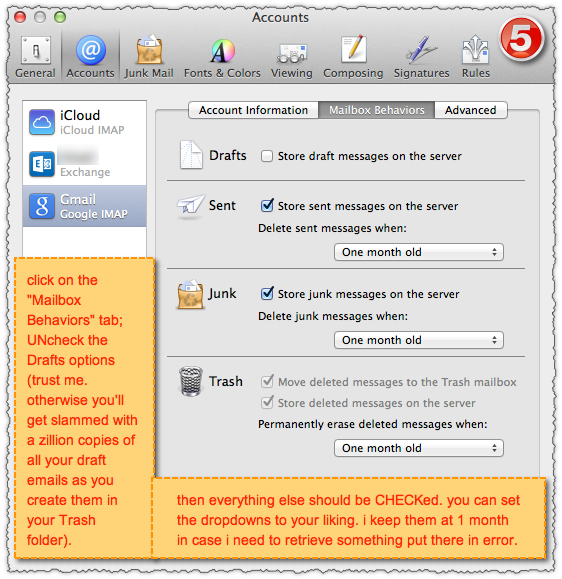 --note: a year or so ago, i had to UNcheck the option to Store Drafts on server due to a hideous multiplication of draft messages showing up in the Trash