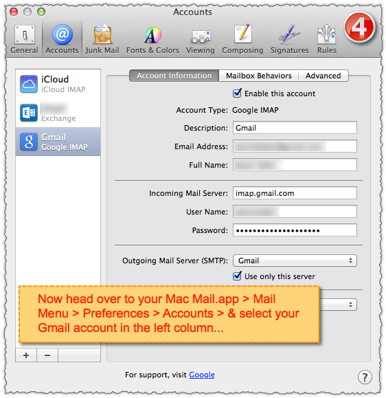 but aside from that last issue, the below procedure has brought back my Mail.app program to use Gmail as "I" believe it normally should work, and has always worked pre-Mavericks.