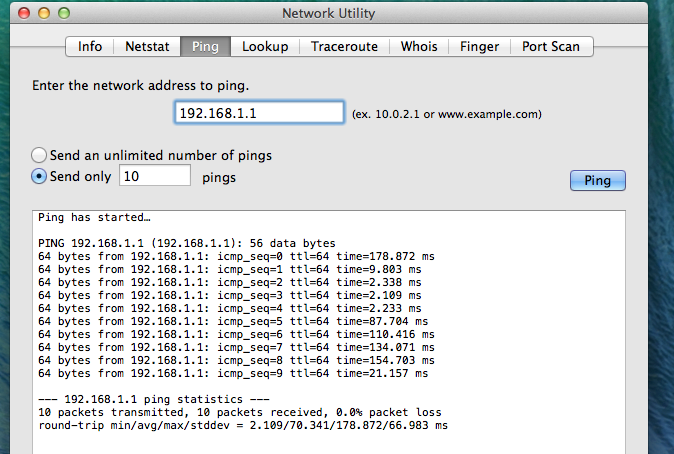 64 bytes from 74.125.193.139: icmp_seq=10 ttl=46 time=101.700 ms