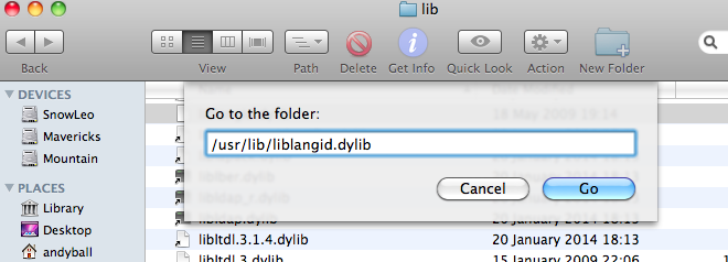 The only thing that should be pasted into "Go to Folder" is /usr/lib/. That's the folder you want to look into.