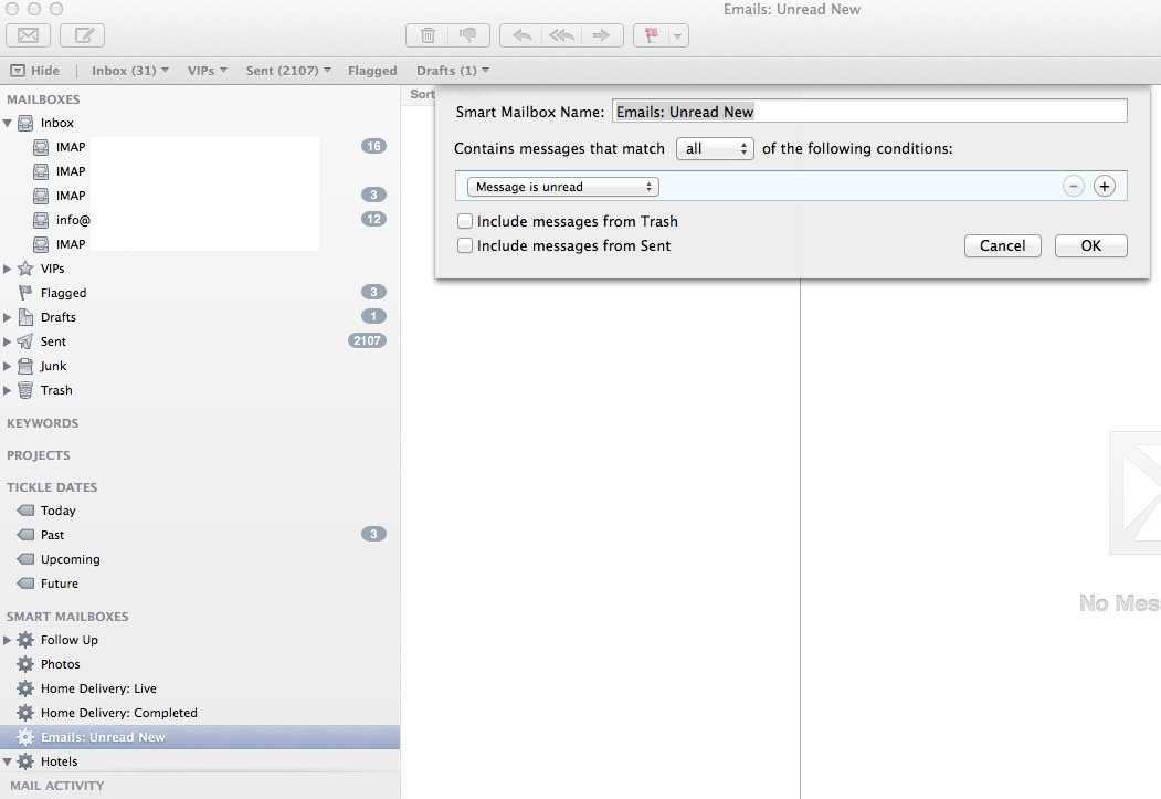 still getting count errors. image attached shows my mailboxes and the new unread emails, and on the right the unread smart search box, with the simple preset search of finding unread emails. as you see, although i have loads, it finds none??!?!?!?