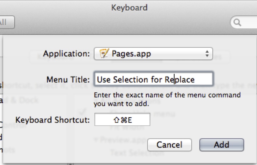 Your highlighted selection is placed in the Replace line in the “Find & Replace” window