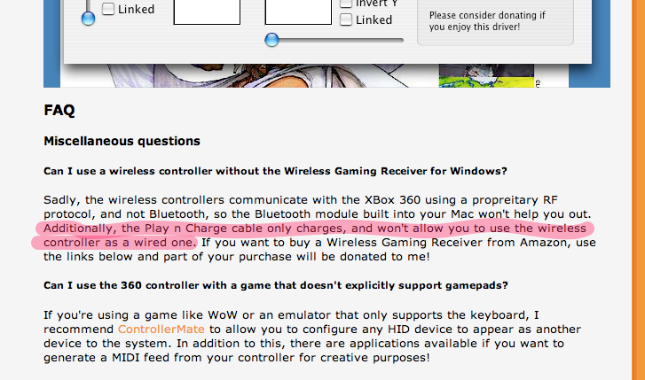 As expected it added a preferences pane and it is recognized. BUT the controller name comes up as "Controller 1 (Wired)". I was expecting to say "Xbox 360 Controller" So far I have tried it with the Dolphin Wii Emulator only. In the emulator there is only one option for the controller and it says, "Input/0/Controller". Unfortunately, it does not work. Choosing a different option allows the keyboard controls to work only.