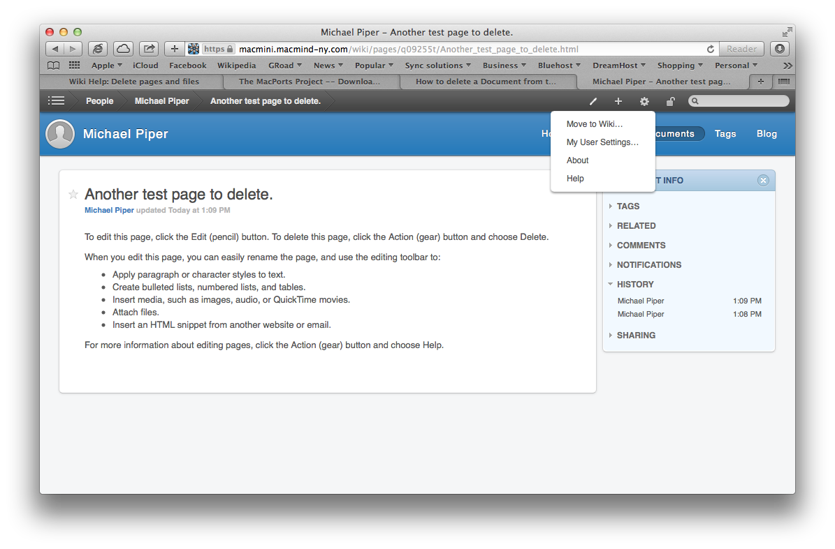 This seems like I just must be missing something - but a client asked and I'm stumped. So here I have created a Document on my Wiki server and have not figured out how to delete it bafter trying for way too long - here I am.