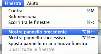 3) Insert the exact phrase that you can find into Finder menu "View" > "Show previous panel" / "Show next panel"