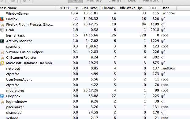 I turned the machine off and left the Activity Monitor open, so, when I turned it on again it didn't show me that awful process!! I0ll never know what it was. I usually use Safari when I'm working, but with dictionaries and stuff like that. sometimes, Facebook, but just sometimes. As far as I know, I didn't open no new websites, so it will be very hard to find out. But I must thank you again for my experience here, Grant! I'm starting to feel like I felt when I used PCs, eventhough I just learned a tiny bit of Mac inside!!! 🙂