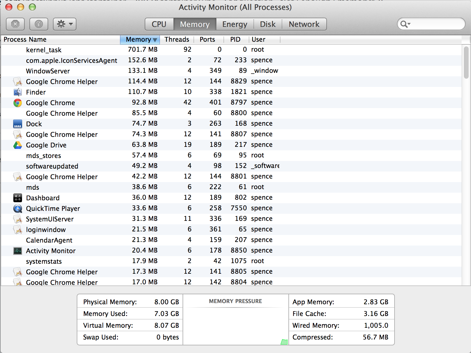 I have a late 2013 15' retina macbook pro. I just got it and I love it except for the fact that so much of ram is being used up and I don't under stand how. As you can see in the activity monitor, there are aren't even enough processes, including the ones not pictured, to fill up 7 gigs of ram. I mean all I'm running is chrome. It doesn't make since to me because i used to run after effects on my last laptop and it only had 6 gigs of ram. What is using all of my memory?