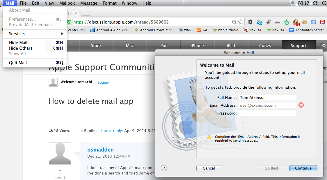 I don't use any of Apple's mail/contacts/etc. because I use everything in Gmail. I'd like to delete the Mail app completely. How do I do that? I've done a search and tried some of the suggestions, but nothing has worked. I'm running Mavericks OS.