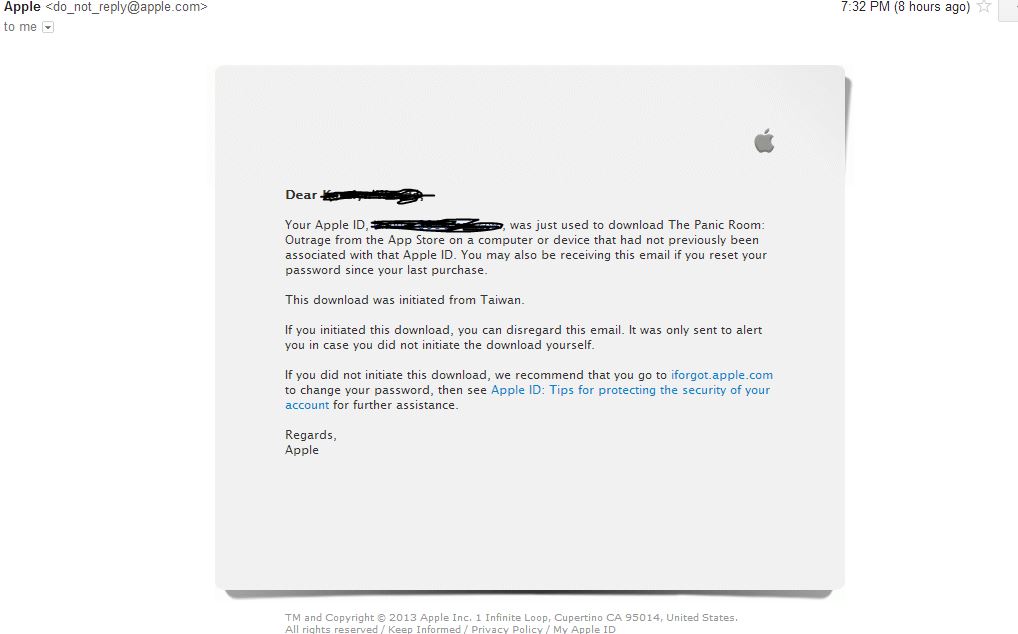Got an email on the 27th stating that "Show of Hands" was downloaded from Taiwan. Checked the mail headers, defiantly from Apple's servers. Loaded up iTunes and sure enough that app had been downloaded on my account on the 27th.