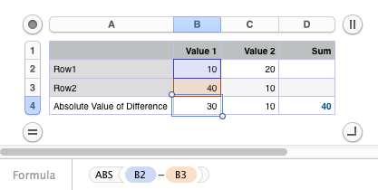 I haven't used Numbers very much and need help with a Formula. What I want to do is subtract the value of each cell in a row from the cell in the same column of another row, and add up the absolute values of all the differences. I'm wondering if there is any way to use a range (:) indicator to do this.