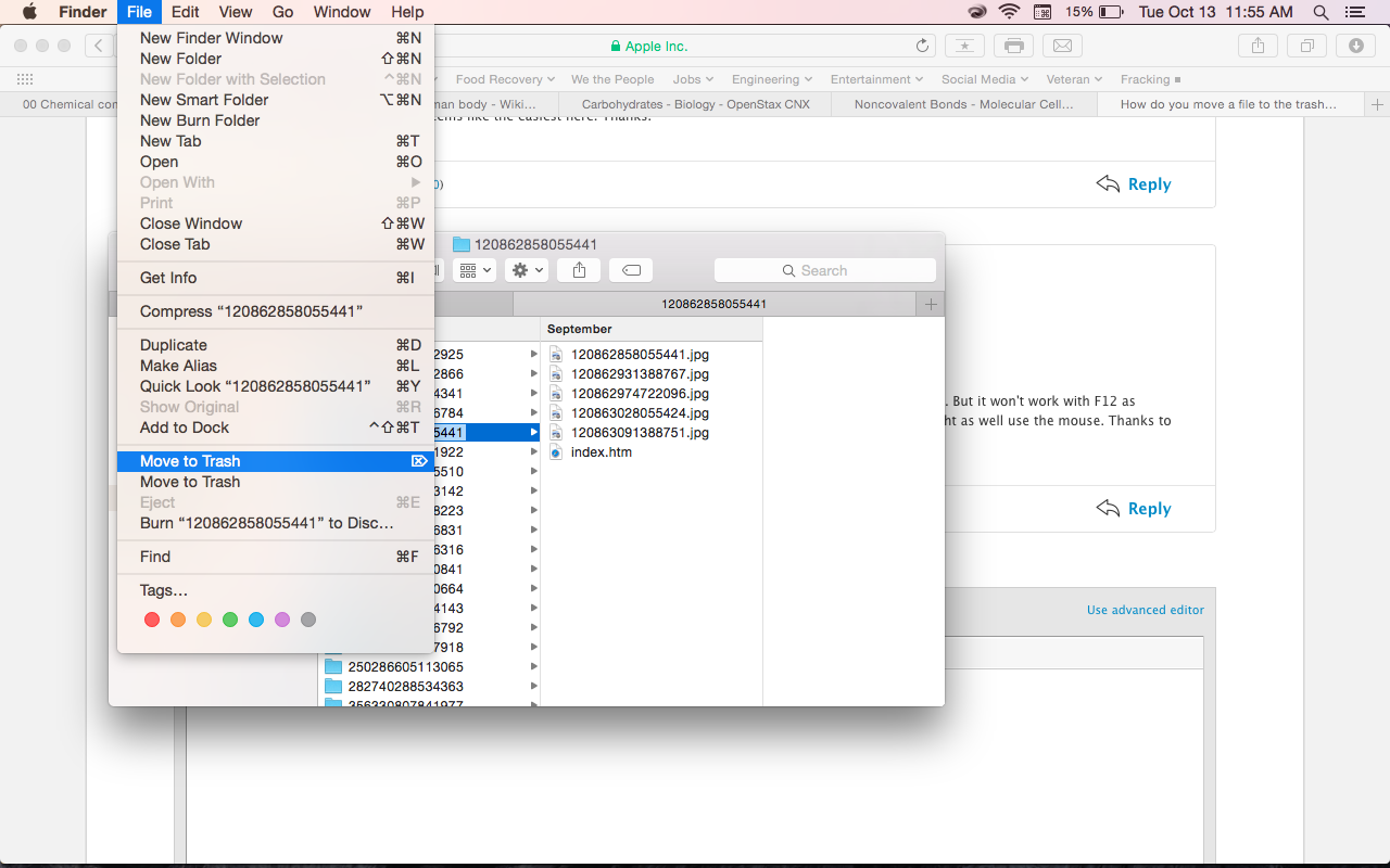 That still didn't work. I would select the file to be moved to trash, press F12, and after an error "beep" sound, the last file in the folder was highlighted.