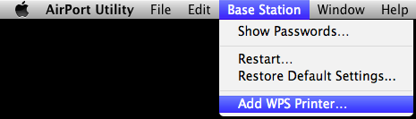 i have been reading the posts for setting up a WPS enabled printer on the airport utility. i follow the instructions and understand what is being done, except i am trying to use my work laptop at home using windows 7, and the airport utility for windows is not showing me anything close to and "add WPS Printer" or even add anything... any ideas? i dont have a printer cable at home...