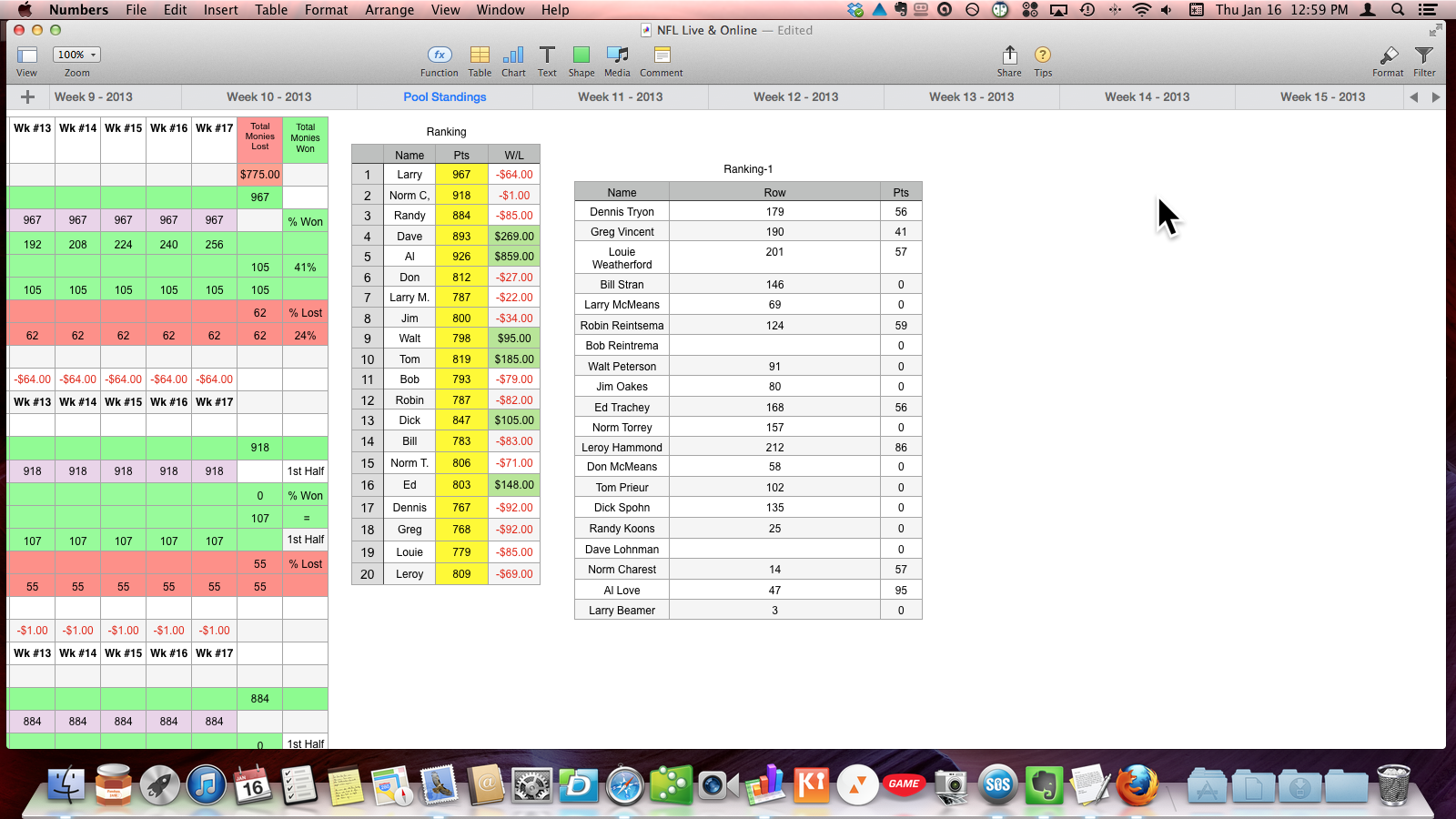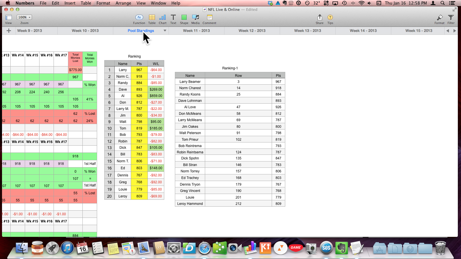 Is "TABLE 2-1" the name of the table? It should be the name of the table where the stats are located (the big table I think is named "2013 Pool Standings") THIS NAME MUST MATCH EXACTLY