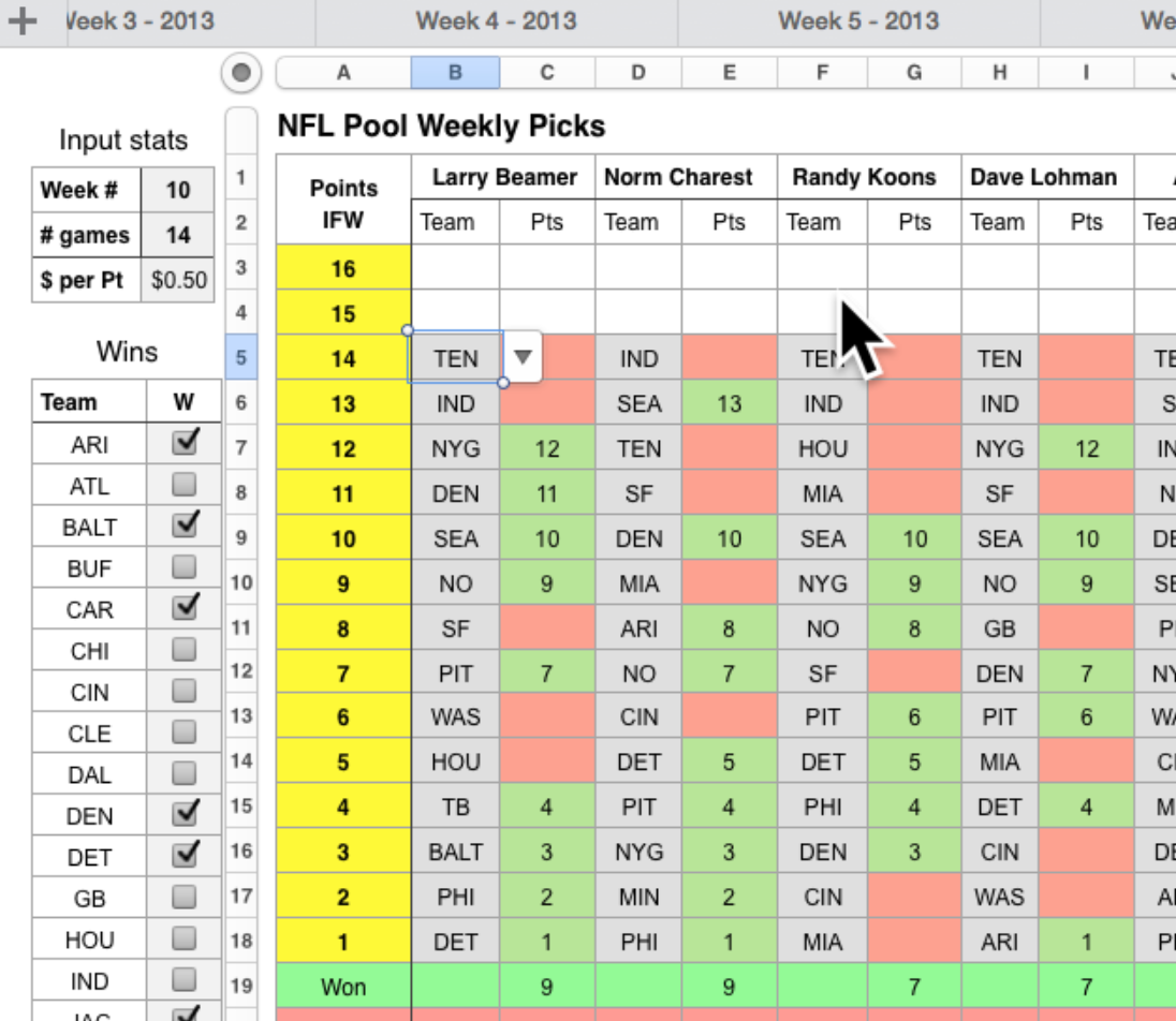 Continue selecting every other cell in row 3 and pasting until all participants team selectios have been set to the 'blank' choice.