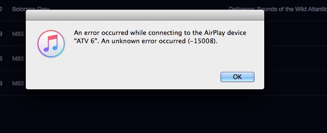 Airplay Unknown error message (-15008)