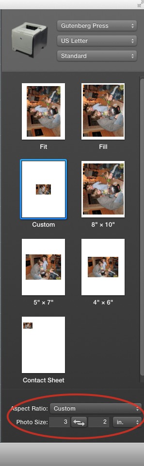 How do I print pictures to be 3 by 5 or 2 by 3? I had those choices in the earlier version of iPhoto.