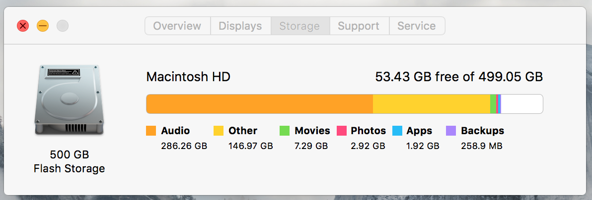 I had noticed my 750Gb HD fill up very quick - didnt understand where all the content was? Info on HD says I have used 500Gb. When I looked into it via the About my Mac panel I noticed about 200Gb in 'Backups' and about 100Gb in 'Other'