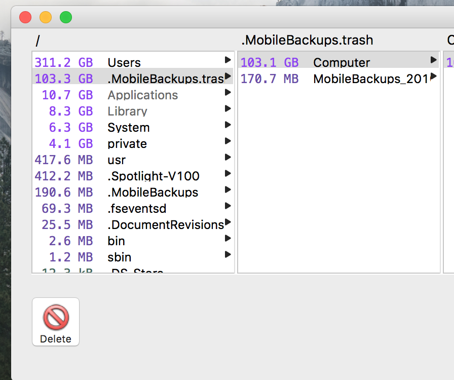 Hi everyone. I know there are a lot of questions about this already, but I am still having issues with the size of my .mobilebackups.trash. I disabled local backups through terminal using the command that is floating around then enabled it again to have a clean mobilebackups folder. My mobilebackups folder is clean now at only 8mb in size, but the issue is the .mobilebackups.trash which is at 154gb. I tried to be patient, as some posts said that it would take a while for my mac to delete the old files, but it's been over 24 hours and not only is it still there, it went up by 1 gig (it was 153gig yesterday).