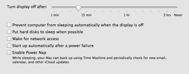 The option also fails to describe "sleep." Looking down to "power nap," and what the computer does when set to that, one can deduce, infer, or reasonably guess - since "power nap" should be different for "sleep when possible" - that once the hard disk has been put to sleep under a "when possible" scenario, it cannot back up with TM or check for email, etc. But since in another obscure place, Apple tells us that an iMac is never completely asleep - it is not even fully powered off with the power button completely, only unplugging gets it completely off - it appears that under both options the "sleep" stops a hard disk from spinning but the OS and hard disk firmware are not shut down. That is what I had previously understood as "sleep." So, clearly, there are two different types/levels of "sleep" intended in the options. Wouldn't it be useful for an explanatory sentence to be added to the "when possible" option as one is given for the "nap"?