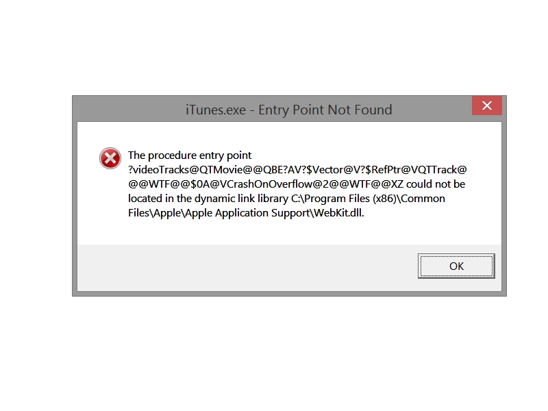 The procedure entry point ?videoTracks@QTMovie@@QBE?AV?$Vector@V?$Vector@V?$RefPtr@VQTTrack@@@***@@$0A@VC rashOnOverflow@2@@***@XZ could not be located in the dynamic link library C:\Program Files (x86)\Common Files\Apple\Apple Application Support\WebKit.dll