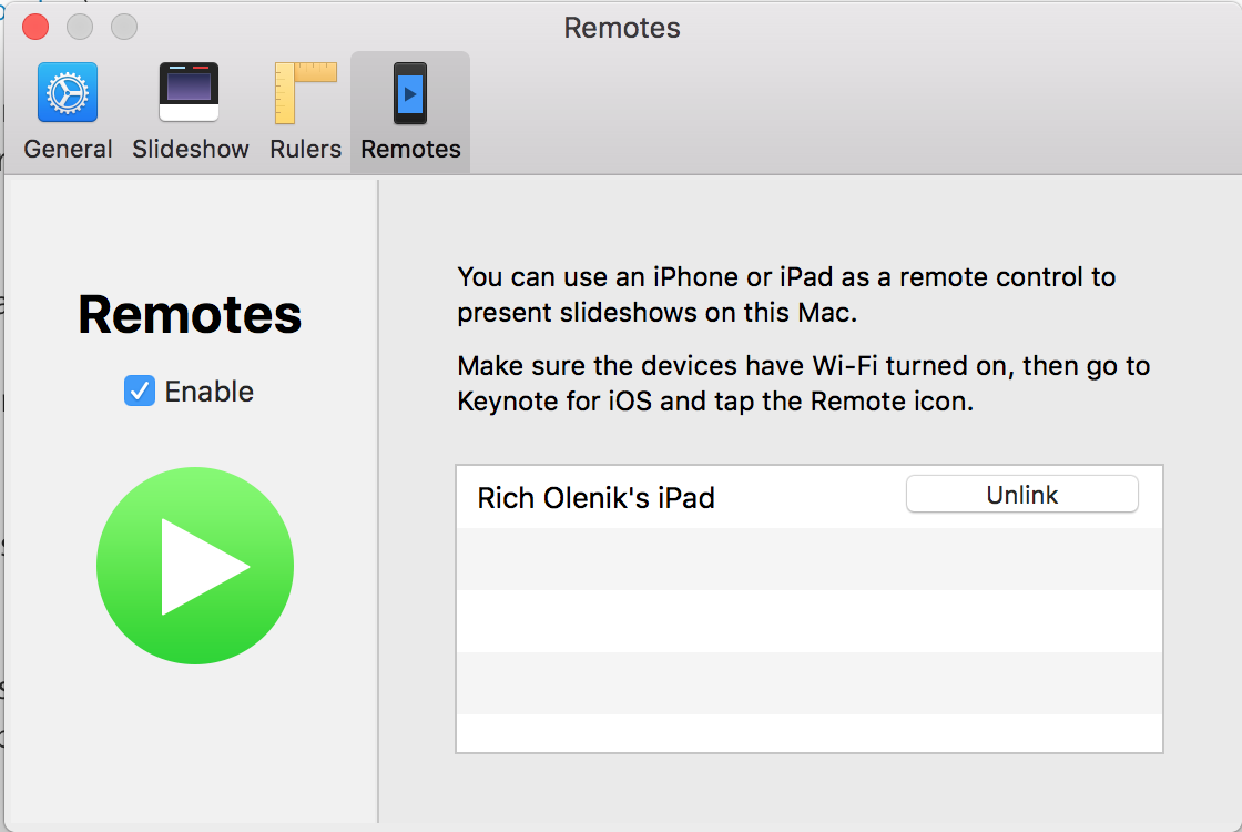 New Keynote Remote Feature Bluetooth iPhone 5S won't connect