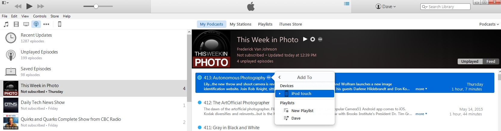 Hello, I recently had lots of problems trying to download the latest podcasts and found that there appears to be another step that one has to do to download and sync podcasts. The best way to describe it is by a screen print(s). I tried several things to try and get around the problem including deleted the podcast and re-downloading, as well as multiple iPod Touch shutdowns and restarts. No luck, until I stumbled across this process.