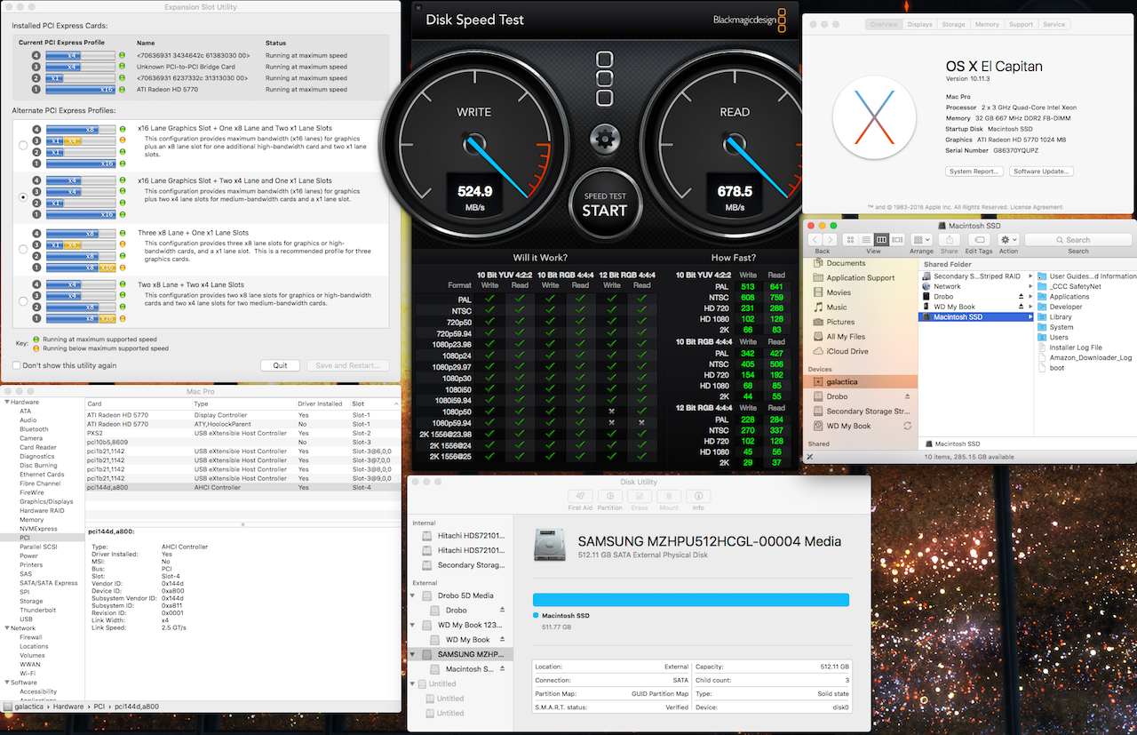 I already said and pointed to Samsung 840s. And for audio, a Sonnet Tempo PRO and one or two 500-750-1000GB SSD would do very very well. Sonnet does not support their cheaper card in Mac Pro 1,1. And if 500GB is enough for your audio, then go iwth it. I don't think you need two or to do an array, you could. Or you could use a 2nd SSD for something else.