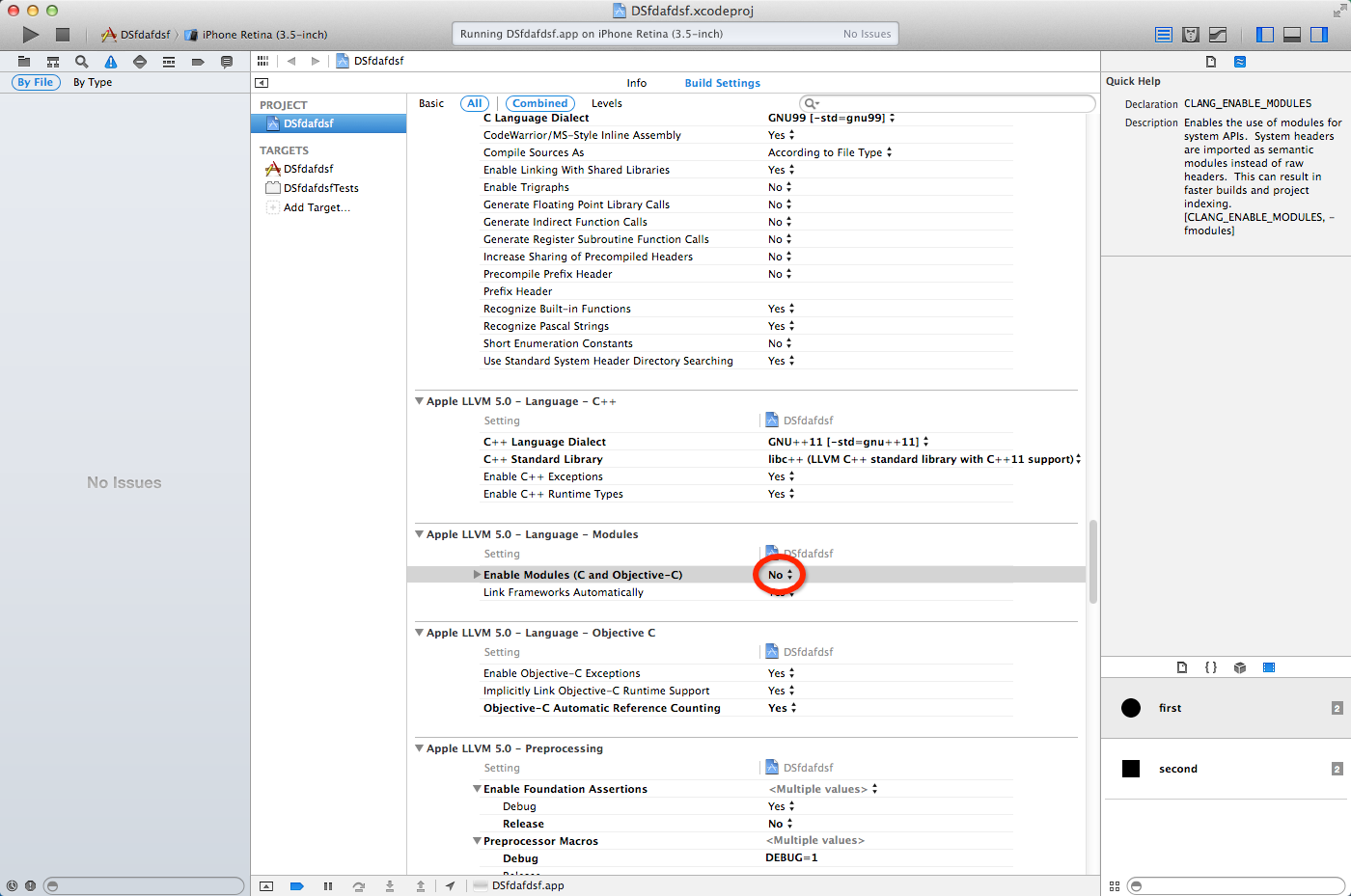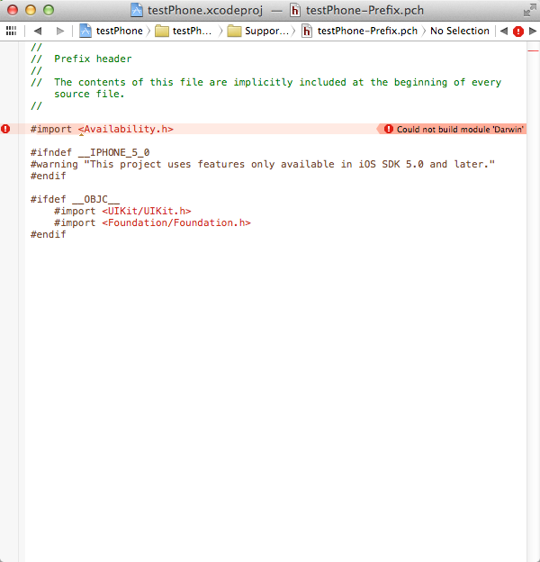 When i first creat a default iphone project and build it. it returns a failure "could not build module "Darwin"