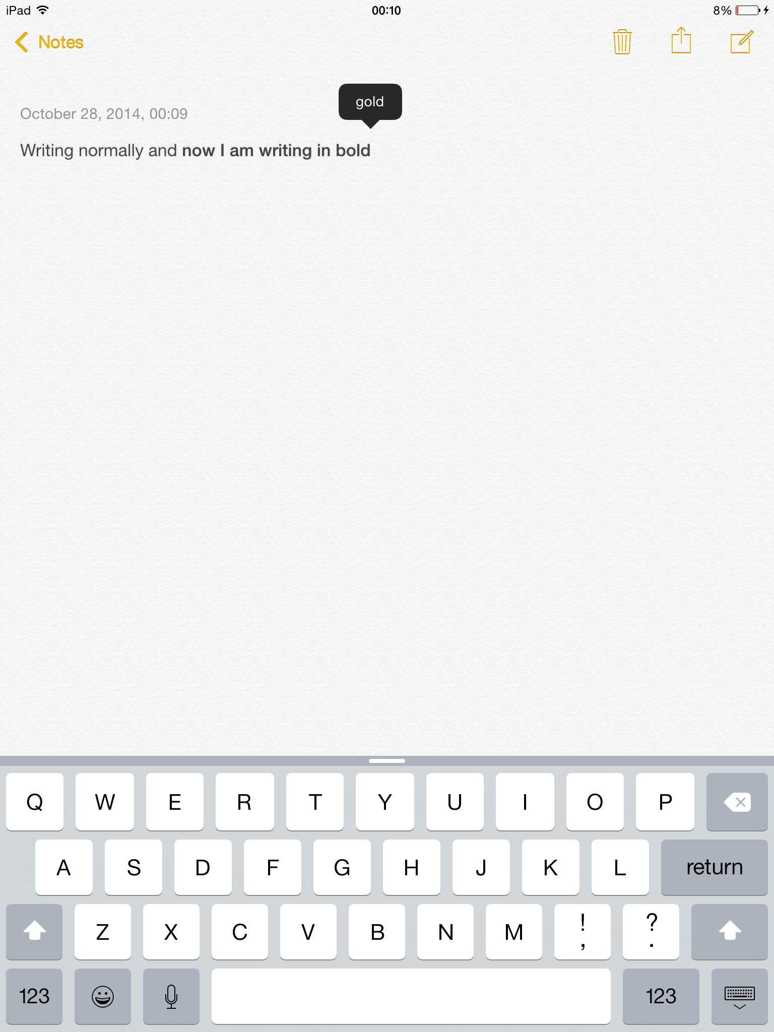 I just got the iPhone 5S a couple of months ago and I originally had the option to make text bold/italic/underlined in the Notes app. Now that feature is gone but half of my notes have bold text and I can't change it. Can someone please help? Am i going crazy?
