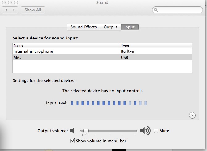 I'm trying to record a track using a USB 2 mic interface. It worked yesterday... I've got everything plugged in, I have the USB interface selected as the input source under garageband audio/midi preferences, plugging into the built in direct monitor on the USB device I'm getting audio from both mics. I've tried selecting both the mic's individually as Mono 1 and Mono 2 as well as the Stereo option under input source. I have the record button clicked on the track itself, but when I record there is no audio, the audio from the mic's isn't making it through somehow. The "Recording Level" slider is all the way down, though it as well as the "Automatic Level Control" are greyed out and un-clickable. I'm assuming that is the problem but I can't find a single way to have the recording level become adjustable and stop it's infuriating ineffectual greyishness.