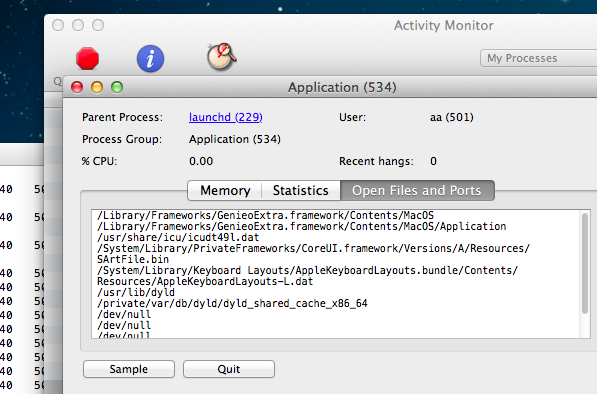 Note that it is using files from /Library/Frameworks/GenieoExtra.Framework