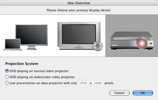 This goes for FotoMagico 1.8 - Yours most probably more modern. Might differ a bit.